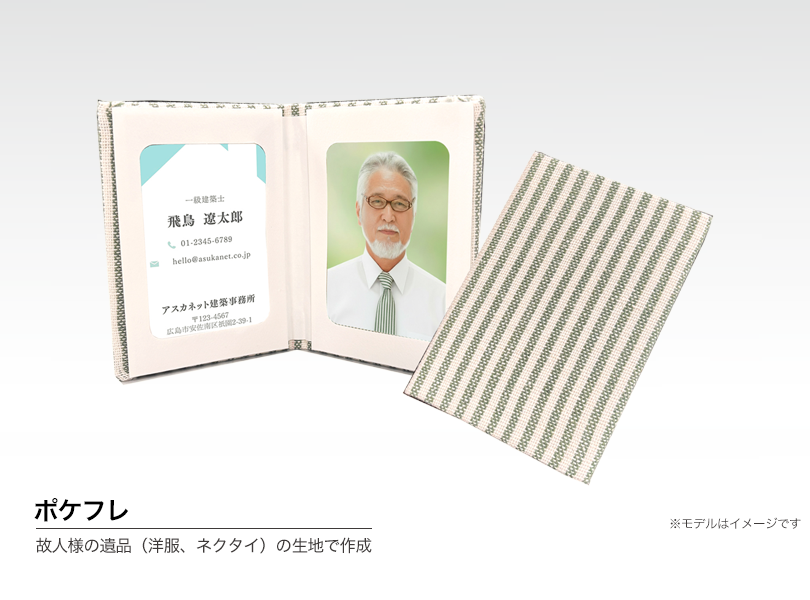 故人様の遺品である洋服・ネクタイ生地・着物・ハンカチなどを利用して、30分程度で簡単にオリジナルの写真フレームを作成することができます。