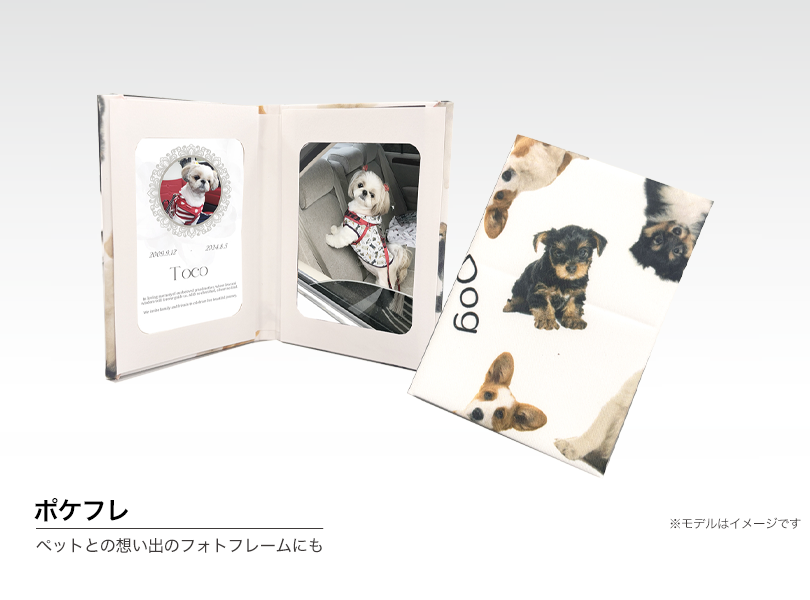 | 写真サイズ | 名刺サイズ(約H91mm × W55mm)× 2枚 (写真窓枠 H68mm × W48mm) |