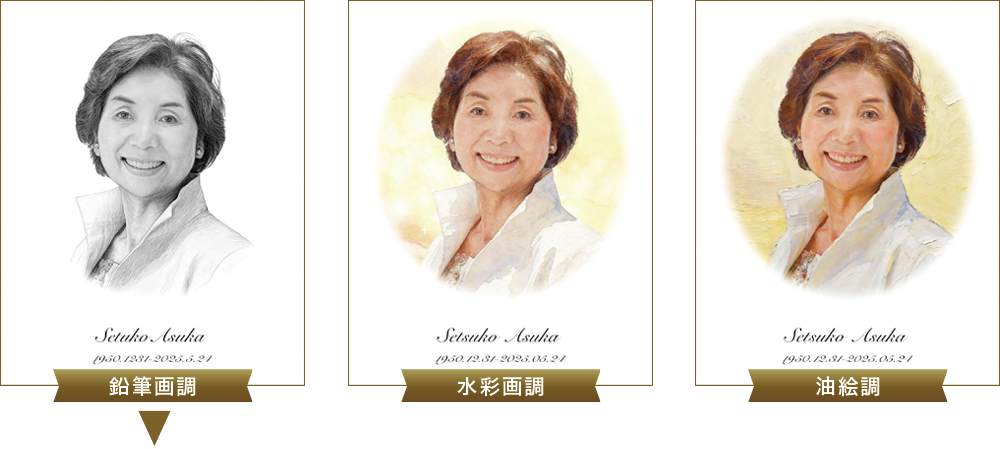 故人様の面影をそのままに、繊細なタッチで描くデッサンポートレートは、お写真とは違った故人様の面影をよみがえらせます。